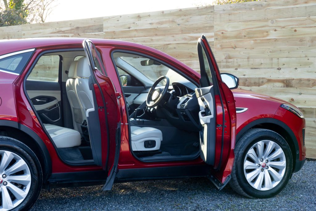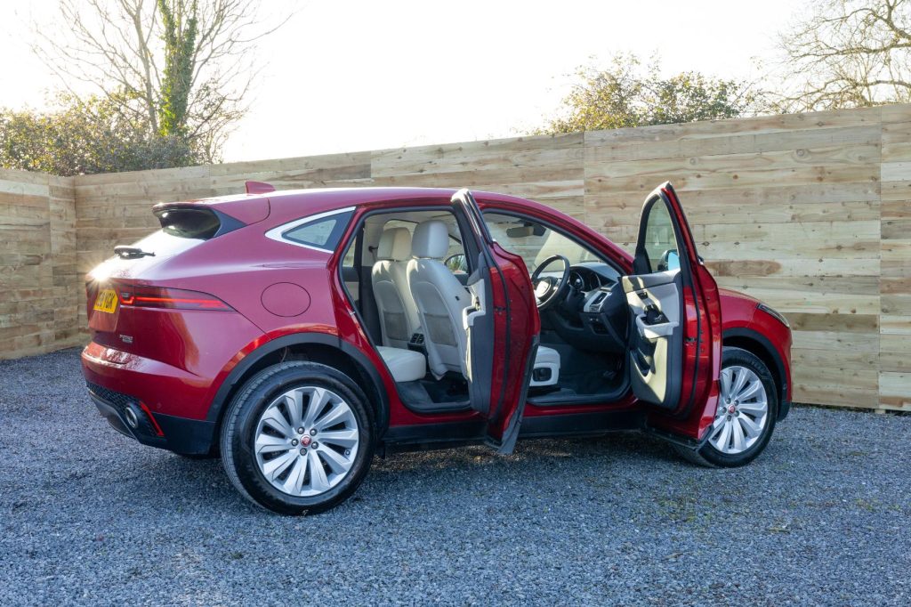 One owner, FSH, Low Mileage, Swallows are proud to offer this 2018 Jaguar E-Pace 2.0 SE Petrol P250 AWD model, beautifully presented in a wonderful colour combination of Italian Racing Red and Light Oyster Leather interior trim. A single owner car, it has been lovingly looked after and main dealer serviced annually despite light mileage. This E-Pace comes with full paperwork file as well as complete online history having covered just under 43,900 miles.