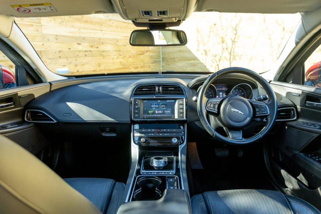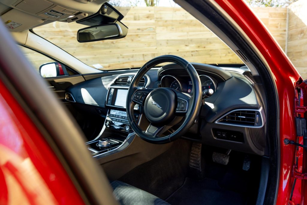 Low Mileage Petrol model, Swallows are proud to offer this 2015 Jaguar XE 2.0 GTDi Portfolio Petrol, beautifully presented in a stunning combination of Italian Racing Red Metallic Paintwork with a Jet Leather Interior and Piano Black Facings. The car comes with an immaculate online service history having been serviced annually regardless of mileage which is very low having covered just 41,100 miles. Main dealer serviced until 2019 since when it has been serviced by us at Swallows Jaguar. Drives impeccably and with extreme comfort and poise being the Petrol Portfolio model.