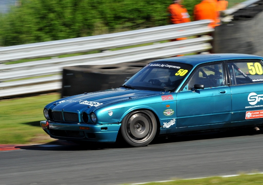 Jack produced another mature performance in only his third meeting of the season with some exciting mis-field tussles. Improving one place on his qualifying position he brought the XJ40 home for a top-ten finish and second in class. Tom Barclay sadly had a radius arm fail so had a DNF. Matthew also retired after a spin caused a lamda sensor to fail. Steve Dowell faired better gradually getting to grips with the XKR and learning the tricky Oulton circuit coming home fourteenth overall closely followed by Damian. Andrew completed the picture continuing to find large improvement in the XJ40.