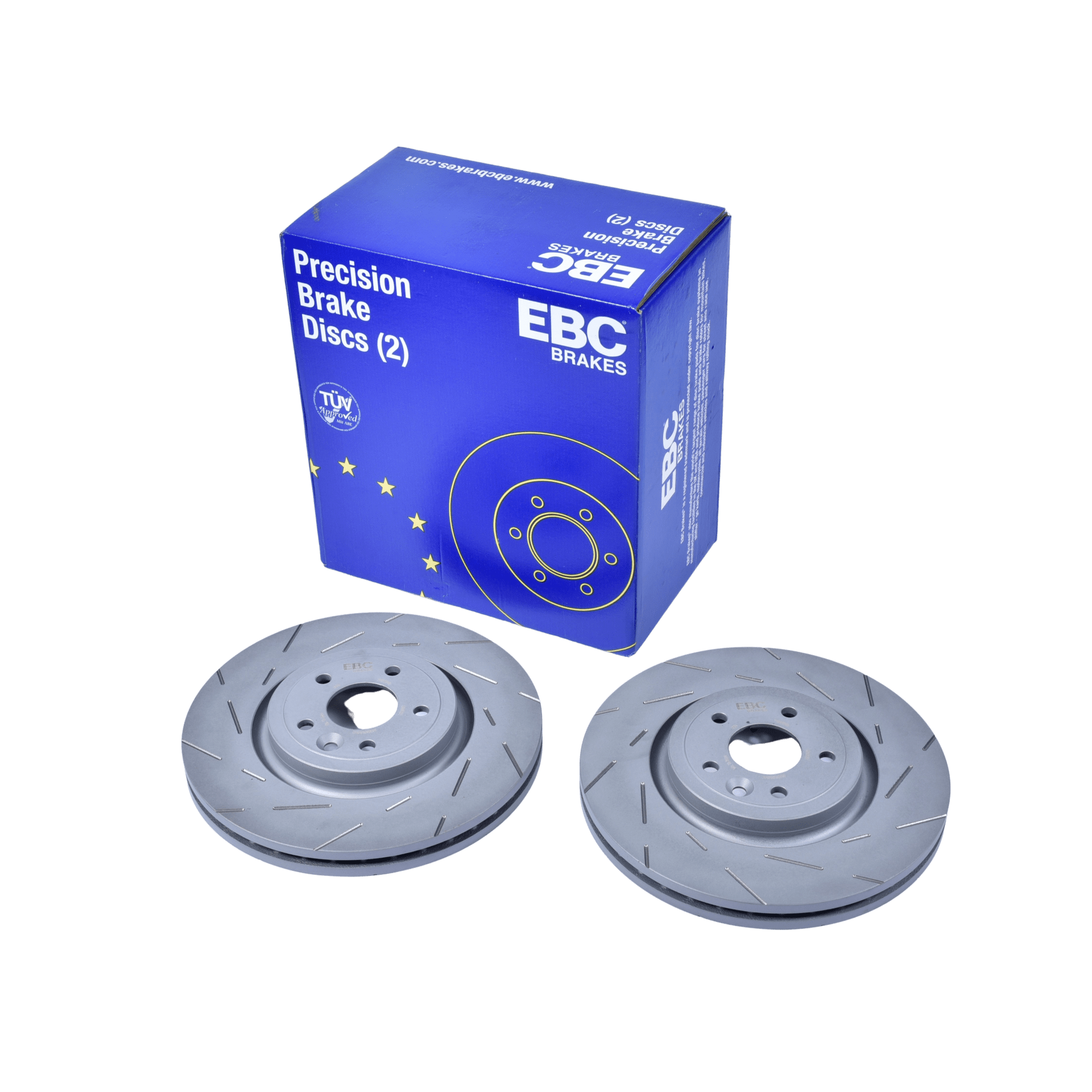 Super quiet sport slotted brake discs featuring the new EBC Brakes narrow profile slot pattern which helps cool and de-gas brakes under load and speed but eliminates air noise common with some slotted discs.